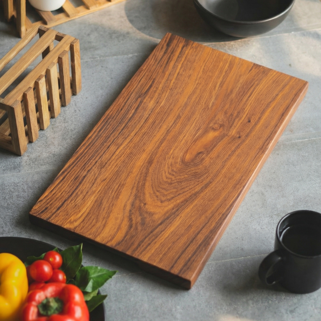 Our Premium Teak Wood Cutting Board blends durability with natural elegance. Carefully handcrafted from eco-friendly acacia wood, this board provides a hard-wearing surface that resists knife marks, moisture, and bacterial growth. Its deep wood grain and rich color tones make it a statement piece on any kitchen counter or dining table. Ideal for both food preparation and presentation, it serves as a reliable partner in everyday cooking and entertaining.