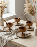 Savour your favourite ice cream flavours with our Wooden Ice Cream Cup accompanied by a spoon, crafted from fine teak wood. Its natural color harmonizes with the delightful taste, adding a nuanced savory essence to your dessert experience. Beyond its elegance, this wooden ice cream cup complements the flavours of your favourite dessert, enhancing the overall indulgence.